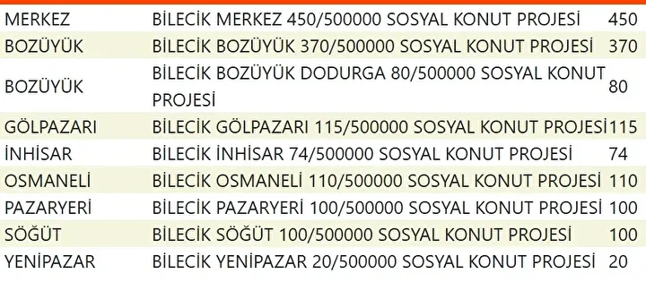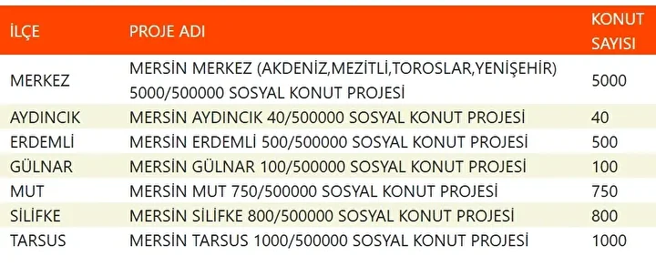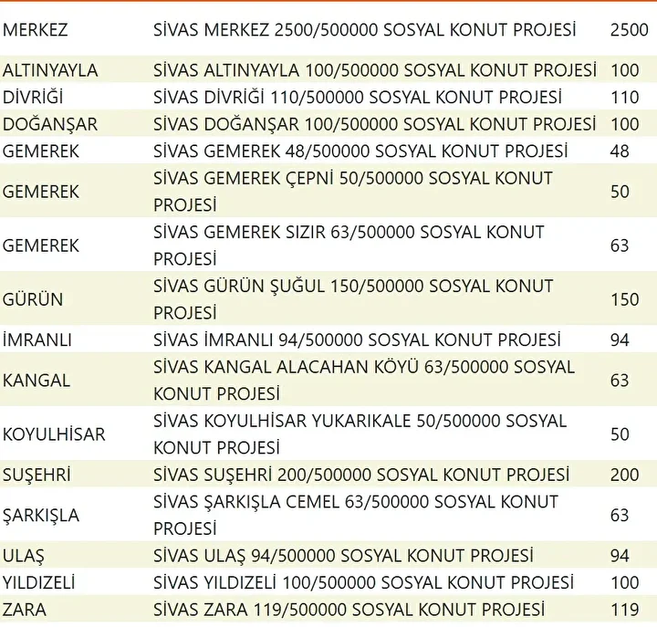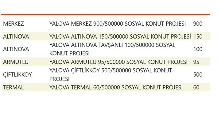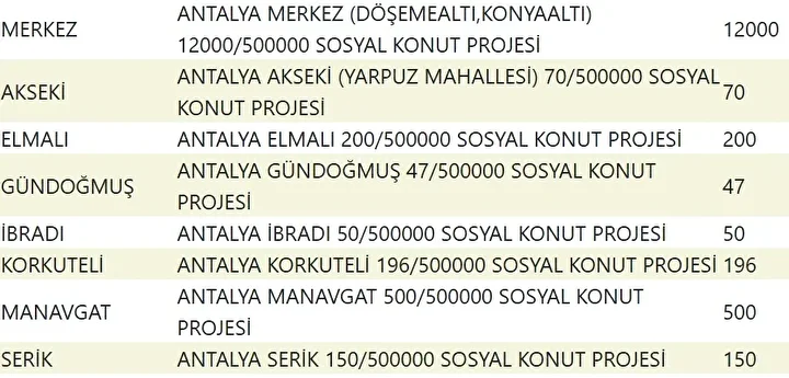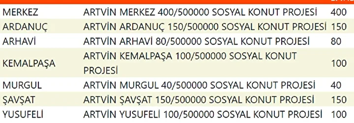 Projede en fazla konutun yapılacağı iller İstanbul, Ankara, İzmir, Bursa ve Konya olarak kayıtlara geçti. Bu doğrultuda 81 ilde 500 bin konutun yükseleceği ilçeler de netleşti.