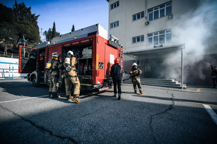 Tatbikat senaryosuna göre, 4 katlı binanın zemin katında yer alan bir derslikte elektrik hatlarından kaynaklanan bir yangın çıktı.