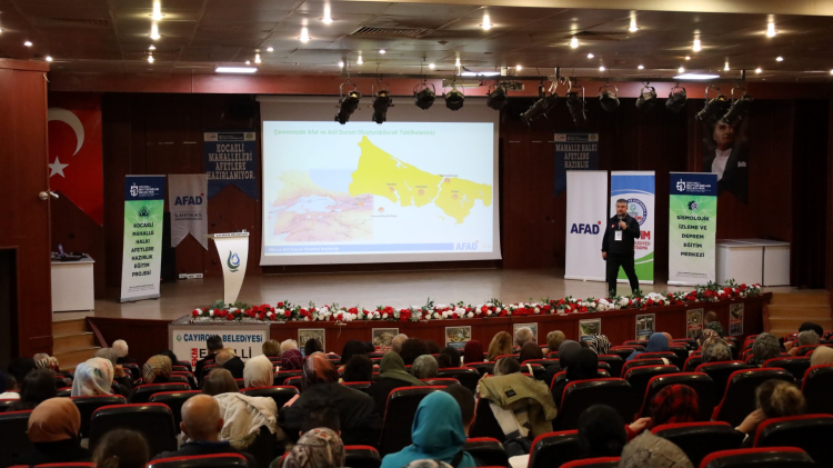 KOCAELİ (İGFA) – Kocaeli Üniversitesi, Kocaeli İl Afet ve Acil Durum Müdürlüğü, Çayırova Belediyesi ve Büyükşehir Belediyesi İmar ve Şehircilik Dairesi Başkanlığı Zemin ve Deprem İnceleme Şube Müdürlüğü tarafından ortaklaşa düzenlenen “Kocaeli Mahalle Halkı Afetlere Hazırlık Eğitim Projesi” kapsamında Çayırova’da 2 günlük eğitim gerçekleştirildi.